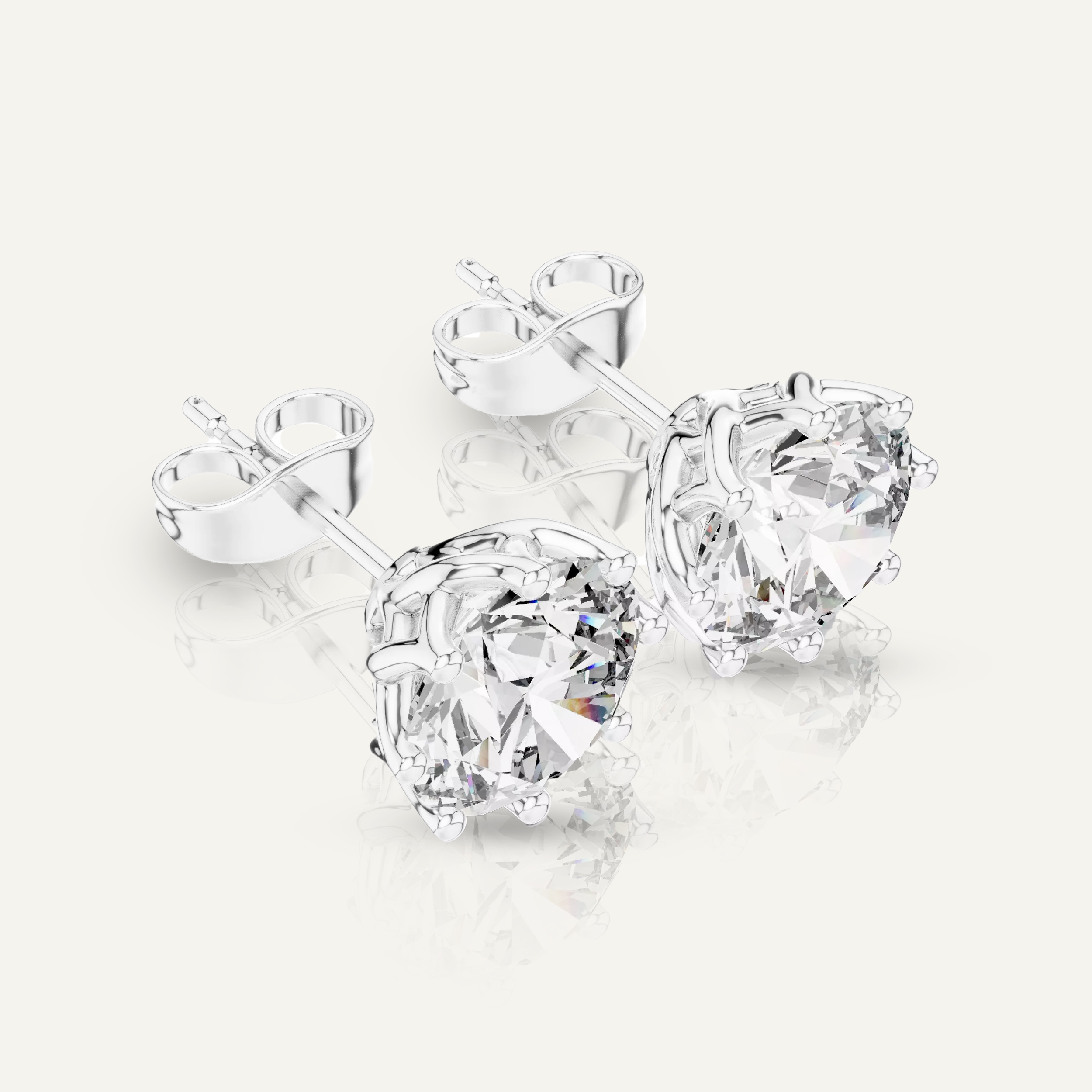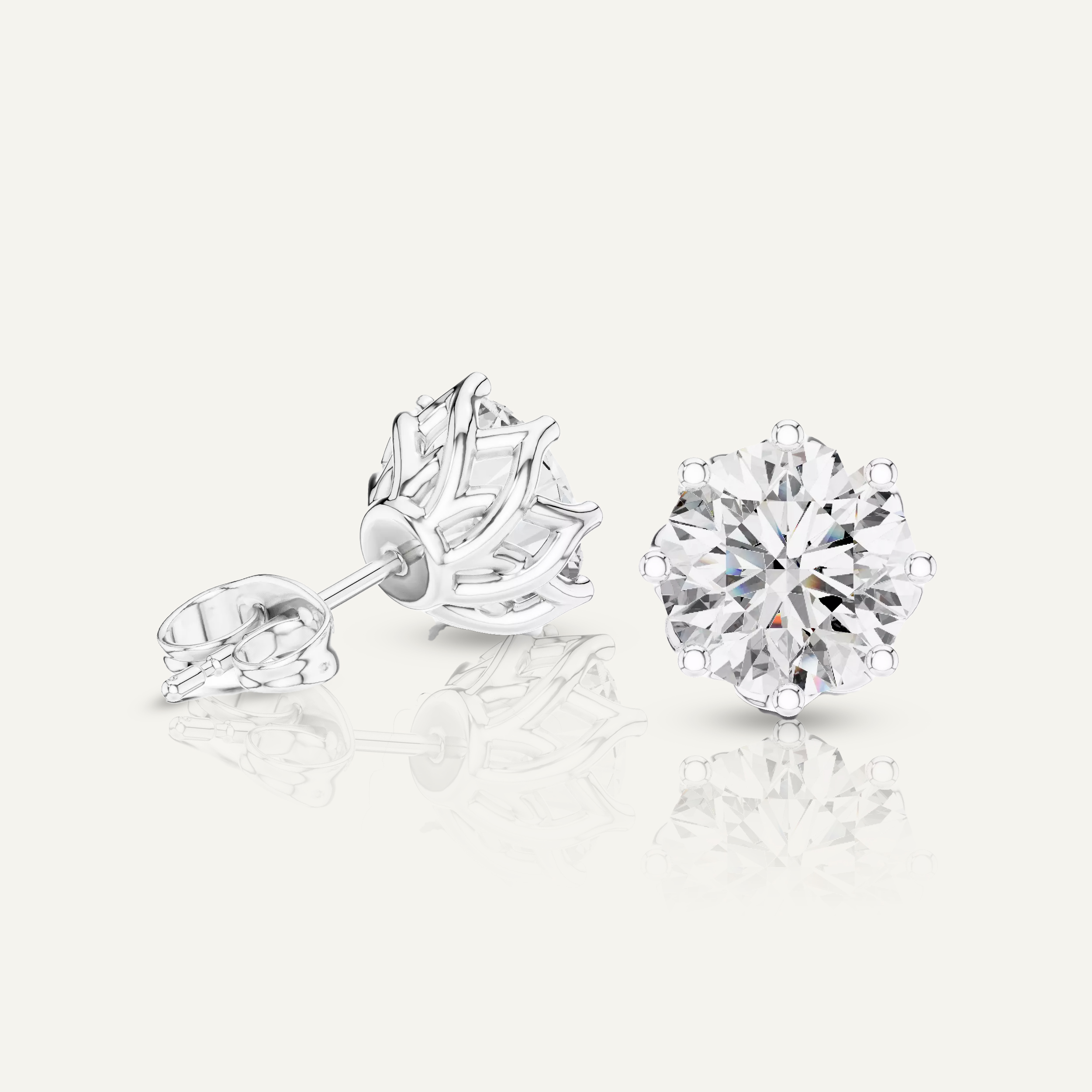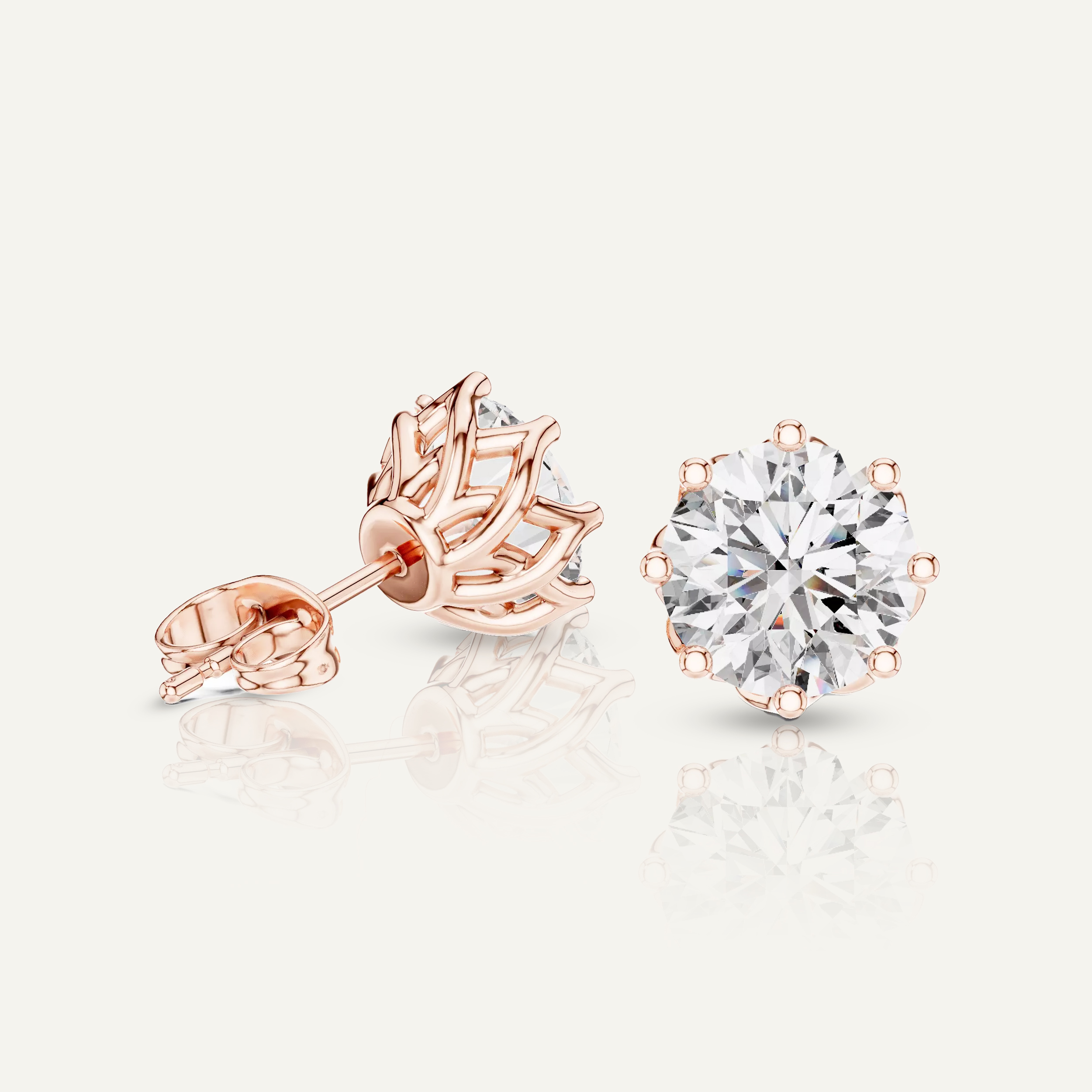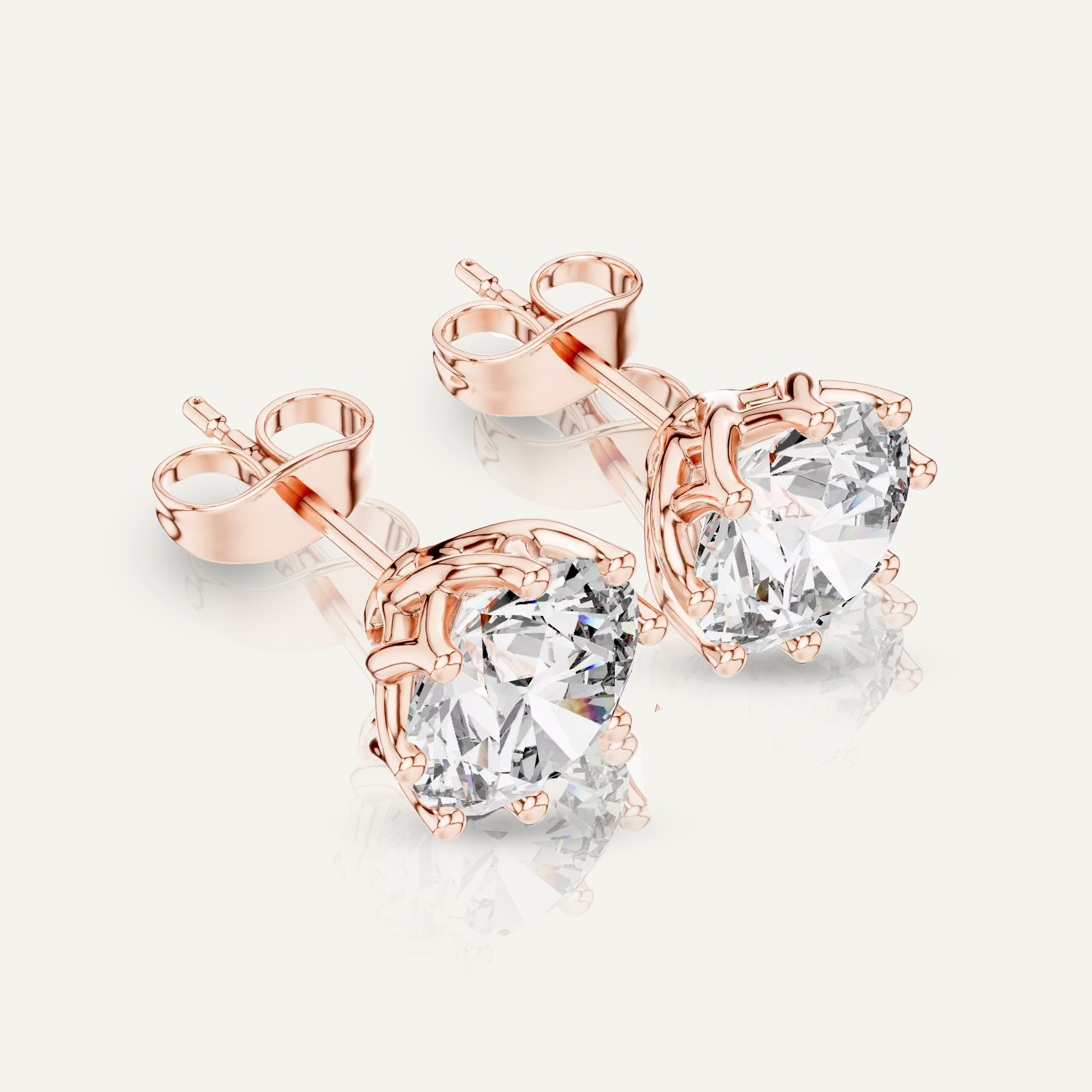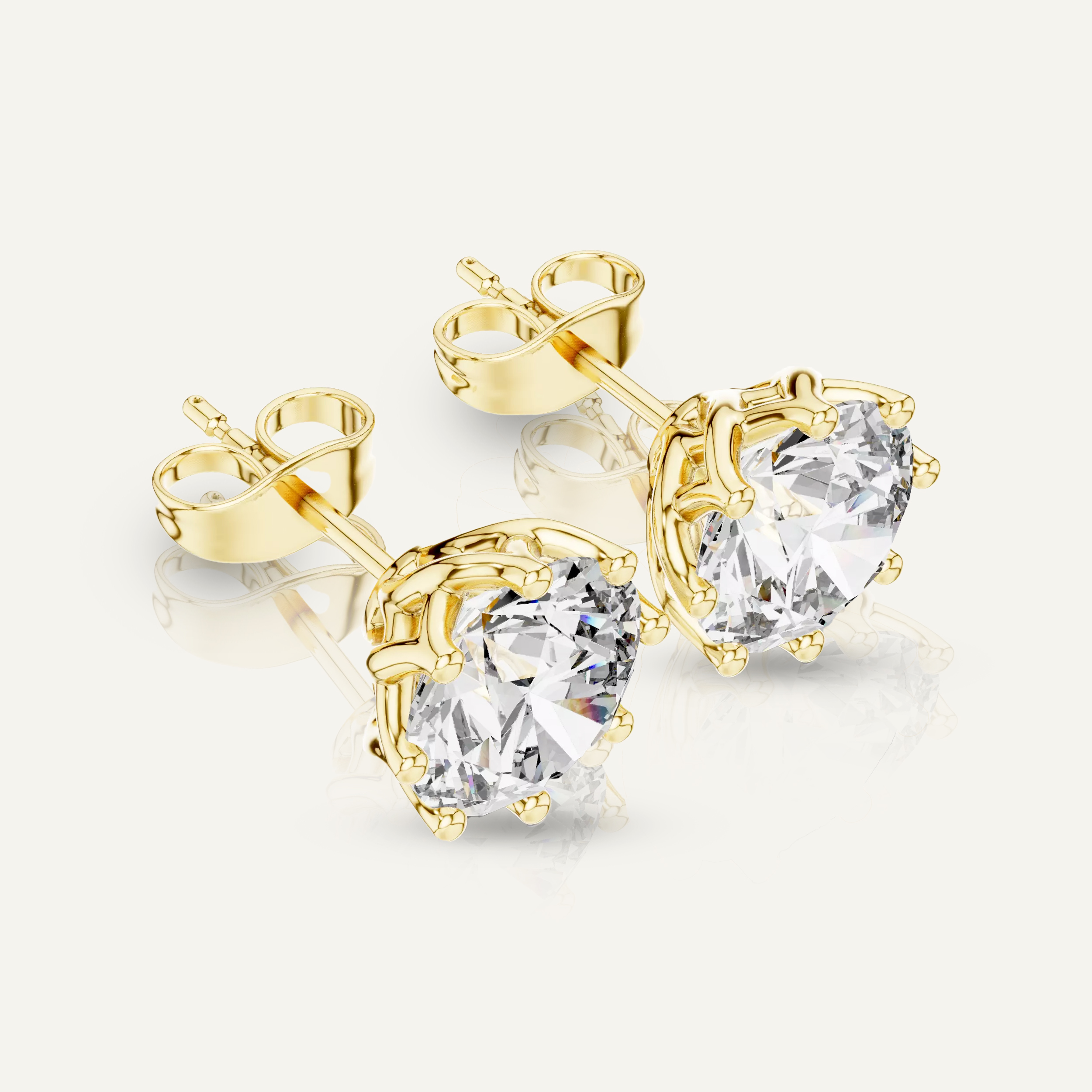 Enhance your shine with our Floral-Set Round Diamond Stud Earrings. With a total of 4 CTW, each earring features a dazzling 2ct round diamond in a unique, twisted gold setting, crafted with VS clarity, E-F color IGI certified lab diamonds.