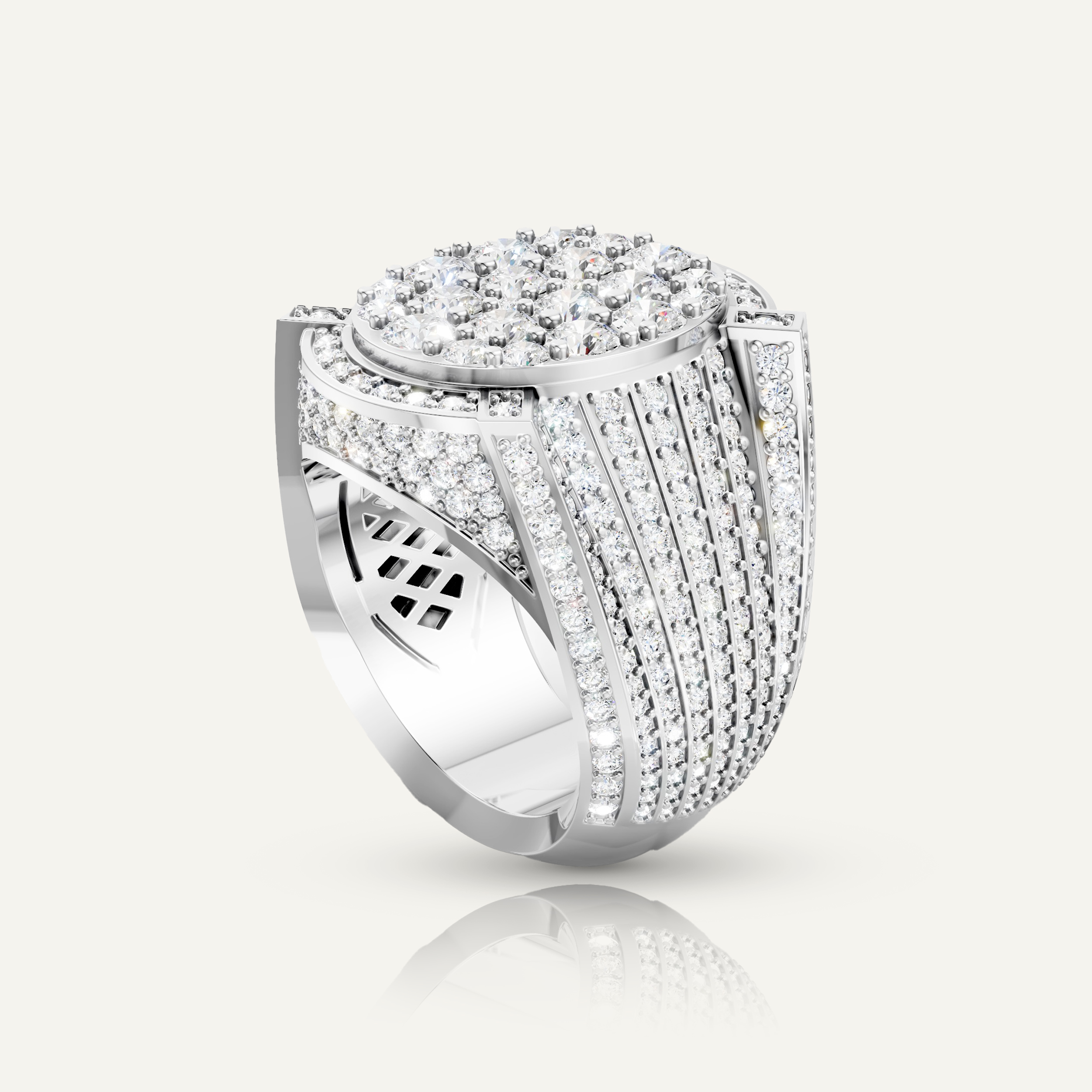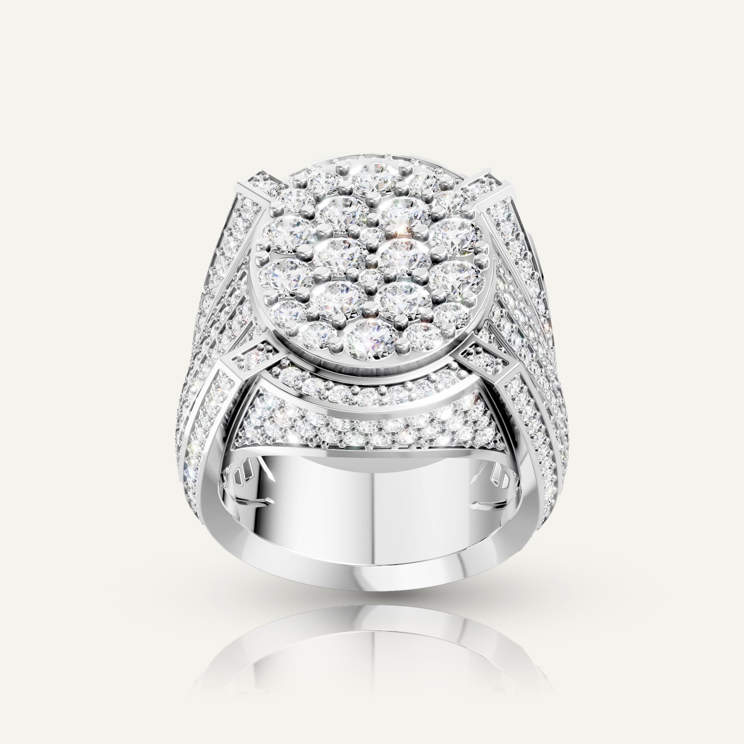 7.13CT total (360 pcs Round Brilliant): 1.7mm(2), 2.5mm(8), 1.2mm(8), 3.7mm(12), 1.3mm(24), 1.1mm(30), 1.0mm(52), 1.5mm(224).